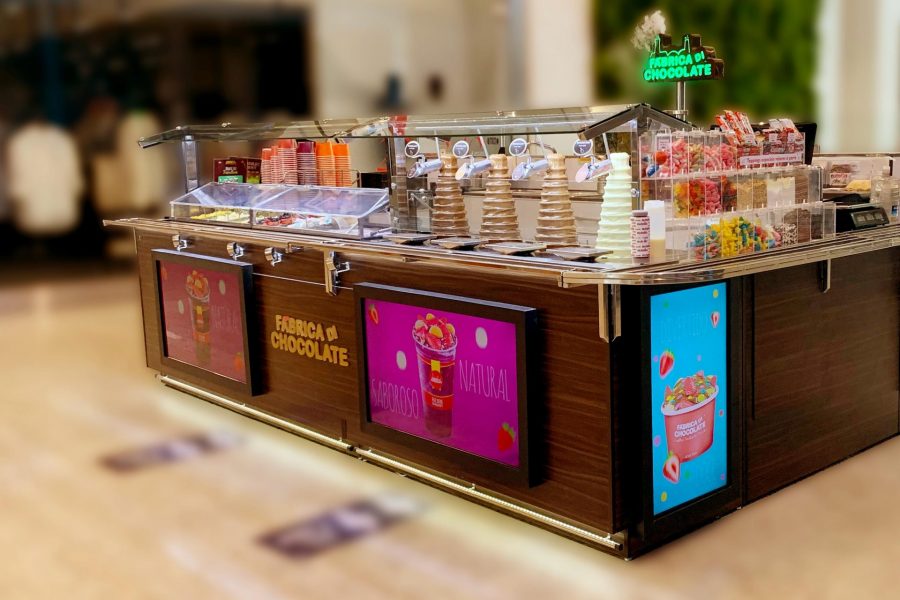 Localizado em áreas de grande circulação, com design inovador e arrojado, os quiosques possuem vários atrativos que cativam todas as faixas de publico. São equipamentos patenteados com padrão internacional construídos em formato de cascatas com movimentos contínuos de chocolates, além dos expositores de frutas e toppings. Para completar, também oferecemos açaí, sorvetes naturais e bebidas refrescantes, aguçando quem busca uma alimentação saborosa e balanceada.